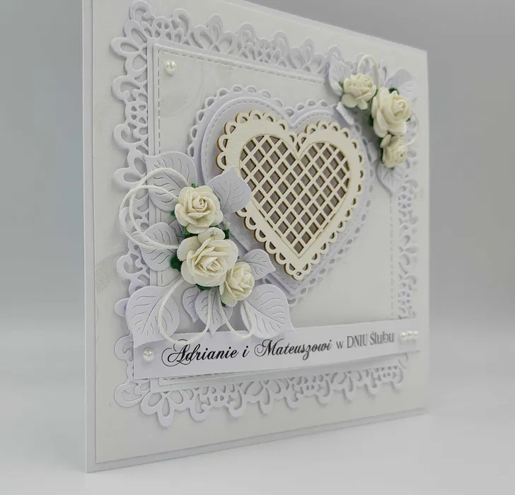 Elegancka, personalizowana, ręcznie wykonana techniką scrapbookingu kartka na Ślub