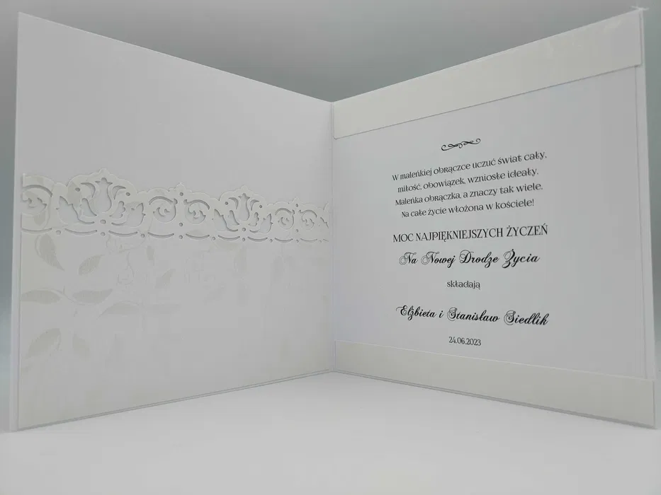W środku miejsce na pieniądze, życzenia.